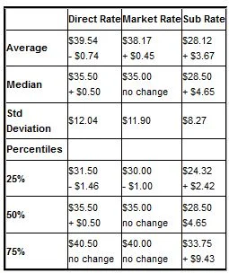 Market Rate = the rate charged the client. This includes data from subcontractors who know what rate the client was charged.