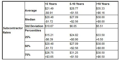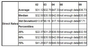 Direct Rate = the rate charged by contractors who work directly with the client and does not include data from subcontractors.