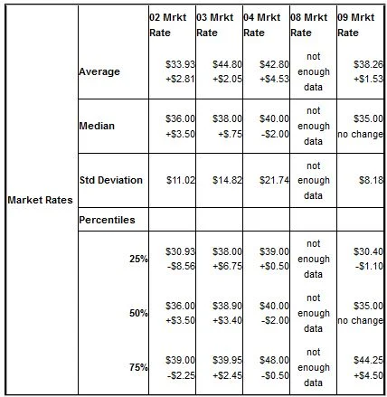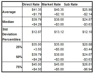 Market Rate = the rate charged the client. This includes data from subcontractors who know what rate the client was charged.