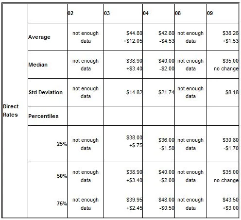 Direct Rate = the rate charged by contractors who work directly with the client and does not include data from subcontractors.