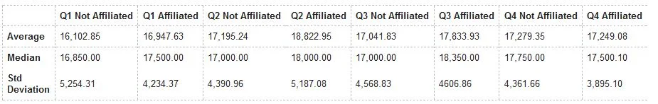 Q1 Not AffiliatedQ1 AffiliatedQ2 Not AffiliatedQ2 Affiliated