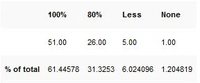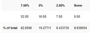 The table below shows what percentage of gross salary the employer pays into the plan. Employees must pay 2.5% into the plan. Surprisingly the percentage of employees receiving 7.5% (maximum benefit) has dropped to 63%. This is a very bad sign because it indicates that this is a benefit that technical writers may no longer expect to find as standard if this trend continues.